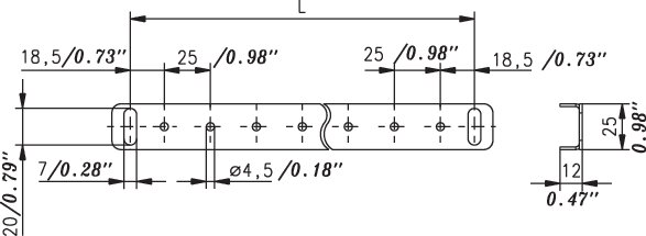 Gelocht Ø 4,5 mm im 25 mm Raster für Schrauben DIN 7500 M5x12 oder DIN 7516 M5x10